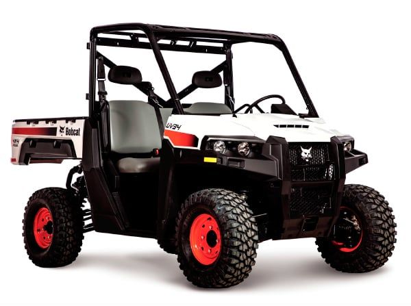 The two-seat Bobcat UV34 diesel and UV34XL diesel (seating for six) are designed with an all-new, more rigid chassis for additional comfort and strength, along with a full 11.7 inches of ground clearance. With more material added to the frame, suspension components, wheel hubs and extended-life wheel bearings, the UV34 utility vehicles offer superior durability. Power comes from a proven 23.5 hp diesel engine for up to 35 mph travel speed. Payload capacity is 1250 pounds with a 2500 pound tow rating.