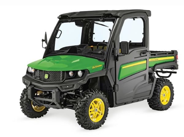 Designed for all-day comfort with off-road terrain capability in all seasons, John Deere’s gas-powered XUV835M Gator UTV has three-wide seating and heating and air conditioning in cab models. Offering speeds up to 45 mph, the 3-cylinder DOHC 54 hp engine is a model of easy starting, throttle response, and maintenance. The cargo box handles up to 1000 pounds Versatility is furthered by compatibility with a full range of over 90 attachments, from snow blades to winches. The UTV also features a large, 11-gallon fuel tank for all-week running between fill-ups.