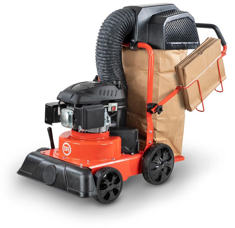 The DR PILOT XTSP Self-Propelled Leaf and Lawn Vac is a powered leaf collector designed to work with standard, disposable leaf bags. You can collect up to 50 pounds of mulched leaves in a single bag and, when it's full, it’s ready for curbside pickup or the compost pile. The DR's unique EZ Bagger Leaf Collection System makes operation easy. Just unlatch the EZ Bagger's cover, place an empty bag on the fold-down platform, crimp the bag around the support ring, and latch the EZ Bagger shut. It’s a simple, fast, and labor-saving alternative to the drudgery of raking and bagging by hand. The included paper bag caddie carries 10 leaf bags, and you can add an optional second carrier to tote as many as 20 empty bags.