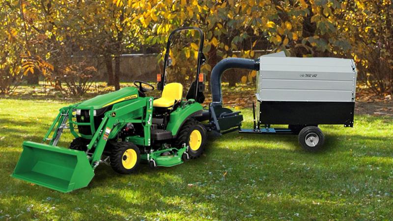The 854 PTO unit accommodates front or mid-driven mowers on compact tractors with a minimum of 13.5 hp at the rear PTO. The 854 blower assembly is supported by stabilizer arms on the three-point hitch. Features include a 2-to-1 gear box coupled to the turbine speed of approximately 3800 RPM. The 50 cubic feet cart and cover are made to last, using top quality 20-gauge steel and are powder coated. Trac Vac’s large line up of leaf vacs include PTO/trailer, front mount, dump from seat and hitch mount trailer or trash cans.