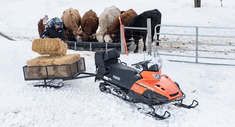 “If it ain’t broke…” the saying begins, and that is definitely the case of this sled. The two-up Yamaha VK540 is legendary for its durability, reliability, and never-daunted abilities. A simple, fan-cooled 2-stroke engine with heated carburetor and both manual and electric starting assures an easy start no matter how far the mercury drops. The VK540’s 20 inch track has aggressive 1.5 inch lugs to provide plenty of traction and the hi/lo range transmission with reverse offers versatility to go where you want. The VK540 has been the top choice of riders in remote areas for a good reason, namely it is dependable, pure and simple.