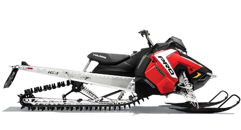 Polaris calls the PRO-RMK 163 “The Ultimate Mountain Sled” and for good reason. It’s said to be the lightest, strongest, most “flickable “deep snow sled on the market. The world’s best mountain sled features the industry’s best power-to-weight ratio to give riders instantaneous lift and immediate response. Power from 800 Cleanfire H.O. engine was developed in conjunction with the finely-balanced AXYS platform to deliver ultimate responsiveness, performance, and ride quality. Even the seat is designed for energetic mountain riding. Digital displays keep the rider informed, while the storage and comfort features will keep you riding for hours.