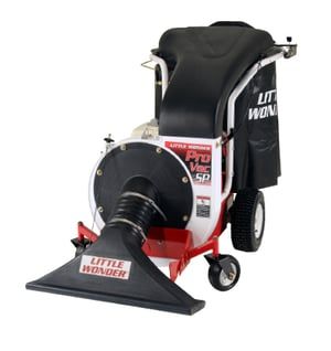 The powerful Little Wonder Pro Vac SP is self propelled and is able to get into tighter locations than many pull-behinds. It features the industry’s largest collector bag—74 gallons—and the front swivel wheels make clearing litter, leaves, and yard debris effortless. Backed by a two-year warranty.