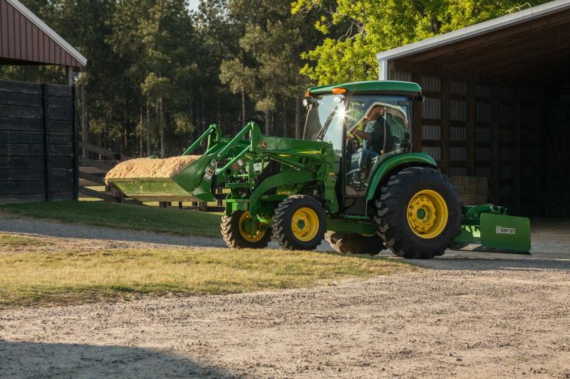 The 50 hp John Deere 4052R Compact Utility Tractor, known for its powerful Yanmar 4-cylinder engine, provides top of the line power with the latest technology for fuel economy, control and accuracy, and reducing the environmental impact. The attractive and functional appearance of the tractor allows for optimum sealing of the cooling compartment, wraparound-style halogen headlights, and an aggressively sloped hood design offering improved visibility. The 4052R’s electronic hydrostatic transmission allows the operator to match the speed of the tractor to that of the job.
