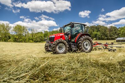 The 110-horsepower Massey Ferguson 5711 D Dyna-4 tractor is the perfect blend of power and performance. It pairs a 4.4-liter AGCO Power four-cylinder engine with the award-winning Dyna-4 transmission, resulting in the ultimate hay-making machine with power to spare. A power shift transmission offers four ranges and four gears for the perfect speed during baling, no matter the terrain or crop load. A standard Brake-to-Neutral feature allows the operator to simply press the brake to stop the tractor, eliminating the need to declutch. Speed matching, another standard feature, shifts gears within a range to maintain a constant speed.