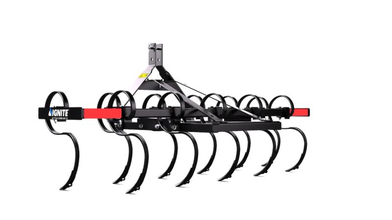 The 3-point cultivator from Ignite Attachments is designed for soil prep, compost mixing and weed control. Built with a Grade 50 steel frame, it comes in 62- or 78-inch widths and offers adjustable tine spacing to match various field needs. Standard 1-inch teeth can be swapped for 4-inch sweeps for deeper penetration.