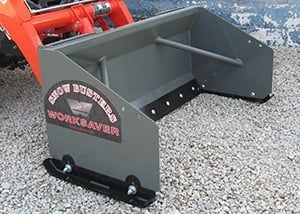 Worksaver’s 20-Series Snow Pushers in widths of 4’ and 5’, are designed for sub-compact tractors up to 30 hp. Models are available with the “universal” skid steer attach method, also for John Deere 200/300, D120, H120 and H130 series loaders with hook and pin quick attach.