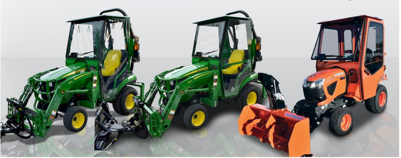 See the new expanded tractor cab lineup for John Deere and Kubota subcompact and compact tractors