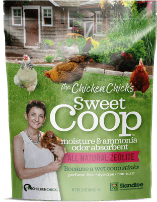 The Chicken Chick’s Sweet Coop® is an all-natural zeolite for chicken coops – Because a wet coop stinks! Sweet Coop® naturally controls moisture and harmful ammonia gas odor in the coop for a sweeter, healthier home for your chickens! Available in 5-ounce packages at Tractor Supply Company and other retail locations.