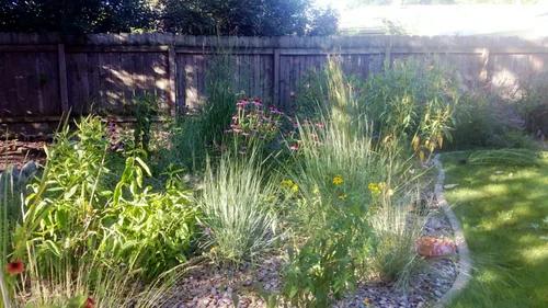 Too often pollinator plots look too organized, with species in pockets and heights arranged like a school class photo. This is a matter of personal taste, but a more natural, cascading series of heights looks the best.
