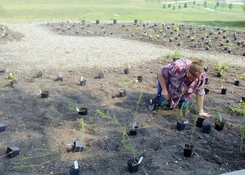 The solution was to use plugs and potted plants. Grown in a greenhouse and planted directly into the ground, the plants establish during the first growing season.