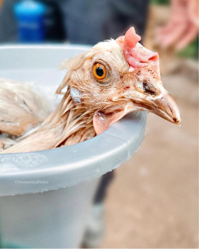 Provide your chickens with dry dust bathing areas where they can naturally rid themselves of parasites daily. Diatomaceous earth can be sprinkled in dust baths, coops and runs as a preventative measure. If lice or mites are present, use a poultry-safe parasite spray, then give the chicken a warm soapy bath, followed by drying with a low-heat blow dryer.
