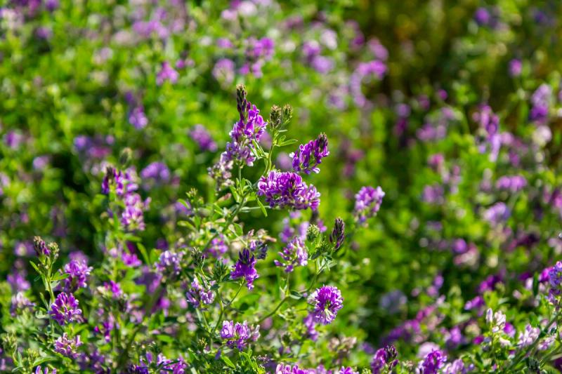 Wyoming Heritage Grains practices no-till farming and interseeds a diversity of cover crops into their grains. Crimson clover is one such cover crop. As a winter-killed cover crop, crimson clover can provide good weed control, fix nitrogen, attract pollinators, prevent erosion, and bring up nutrients found deeper in the soil.