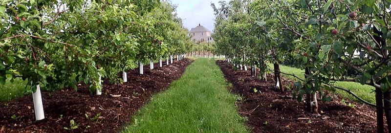 But dwarf apple trees also have shallow roots and can’t withstand competition from weeds. In the past, the McGuires spread a thick layer of bark mulch under the trees, which keeps most weeds at bay, but they’ve struggled to control Canada thistle.