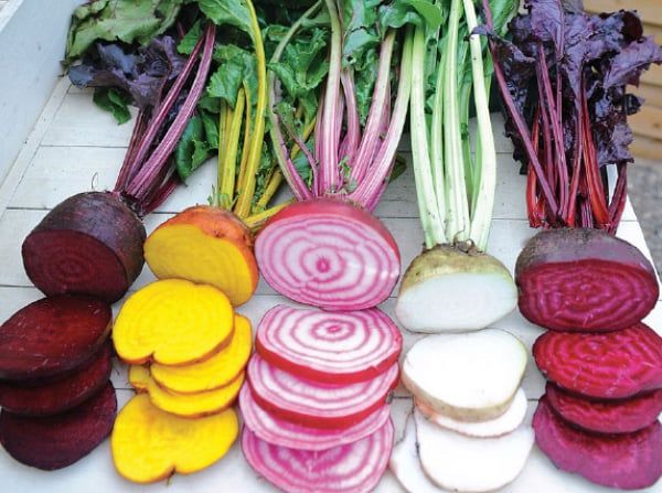 Detroit Dark Red Beet is a dependable variety that was introduced way back in 1892. The mid-sized beets are about three inches in diameter and they are tender and sweet. Also fun to grow is a Rainbow Mix of five different beets including Boldor (a golden beet with bright yellow-gold flesh), Chioggia (an Italian heirloom with bright pinkish-fuchsia skin and concentric rings of white and magenta inside), and Albina Vereduna (a pure white variety that has the same delicious flavor as its red cousins). Seeds are available from www.ParkSeed.com.