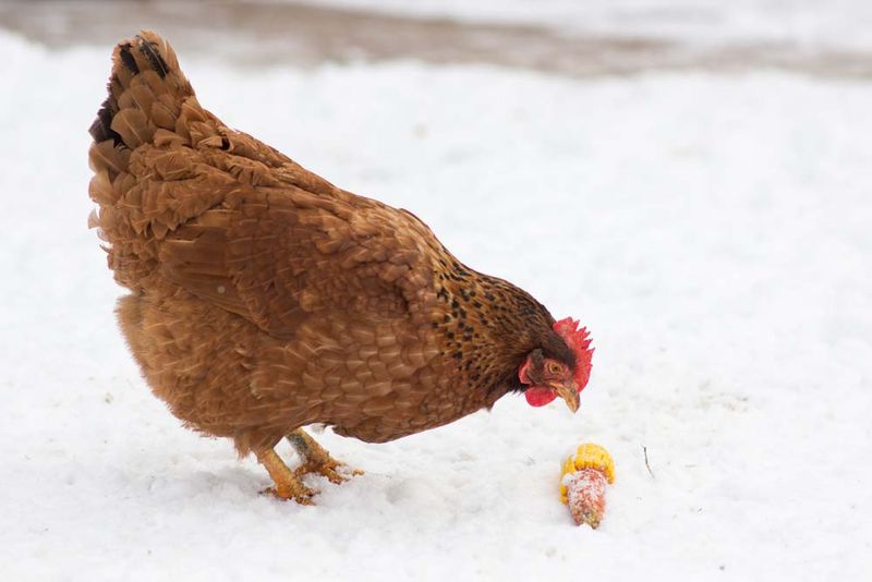 In colder months, chickens require more energy to stay warm which can be accomplished by feeding scratch grains and high-carb chicken feed. Corn, bread, sunflower seeds or flaxseed are a wonderful additive which can provide the some extra calories to keep them toasty warm during winter.