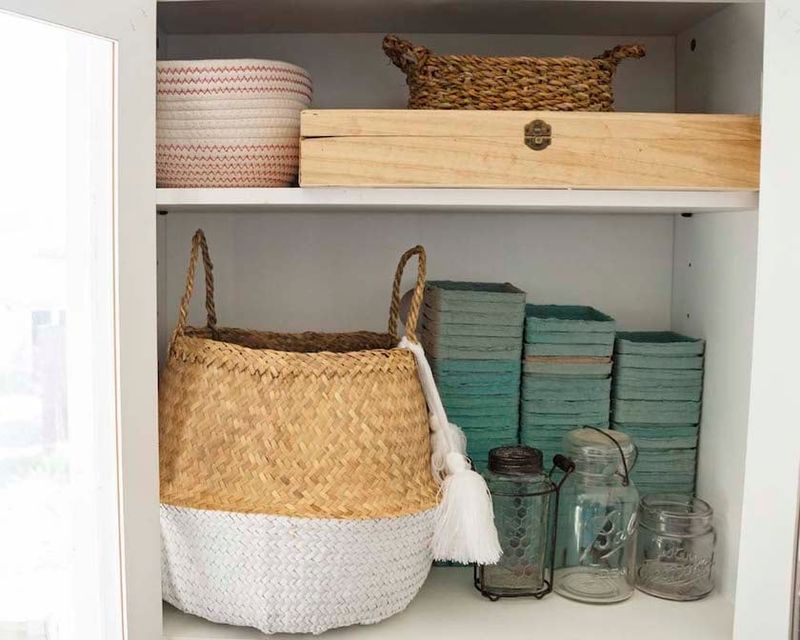 Shelving: Shelves, whether it be book shelves or wall shelves, not only provide a place to tuck away treasures, but are an easy way to create storage. (You can put your baskets here!)