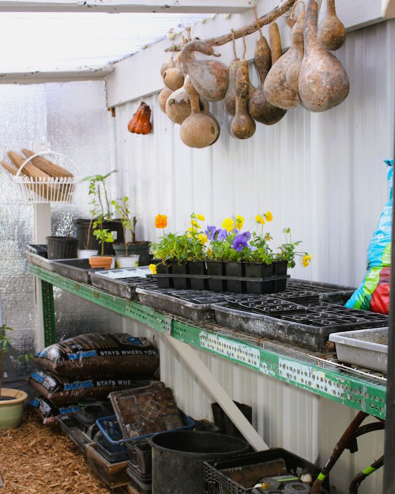 For my seedling trays, I used some rabbit cage pans that I had on hand. Another thing I like to do for affordable seedling trays is to hit the thrift store for cheap casserole dishes. They are sturdy and hold water well, which is important for me as I prefer to bottom water all my seeds. They also look charming in your workspace!