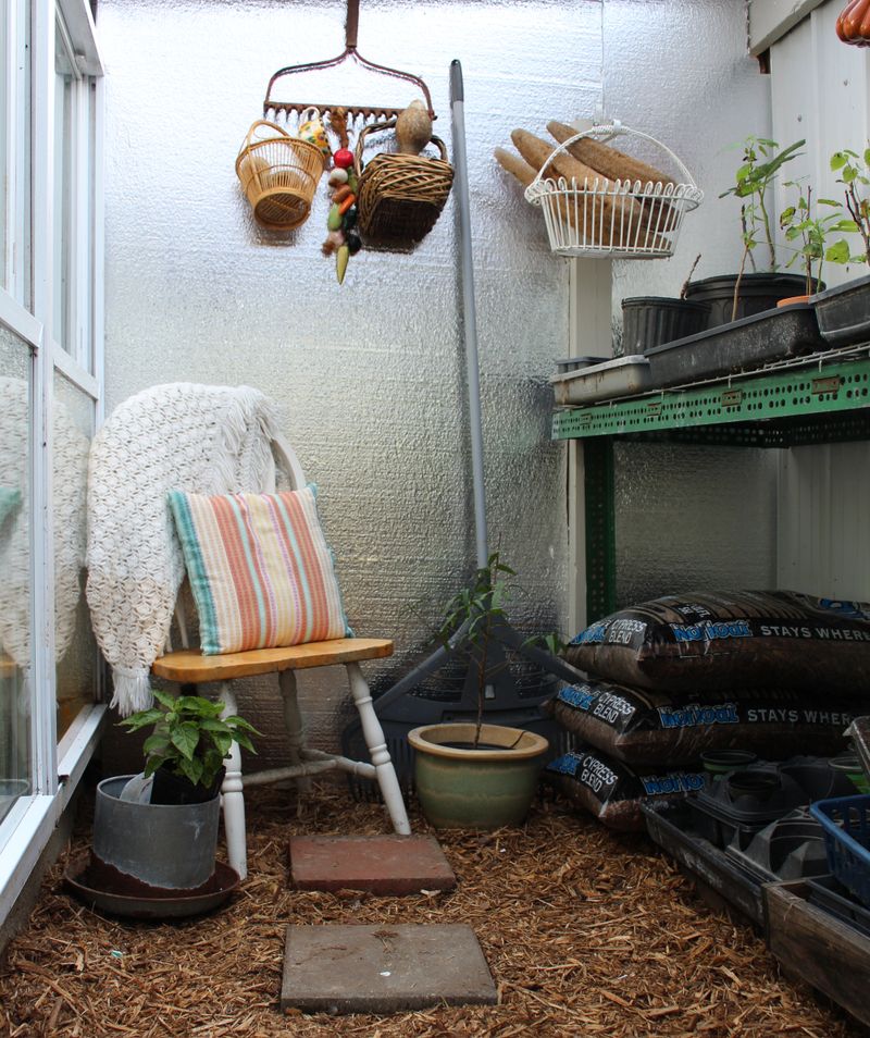 For myself, I dug through the dark back corners of our garage for some leftover paint. I was able to paint the interior and exterior with less than one gallon, pulling the whole look together and giving me a space to enjoy working in.