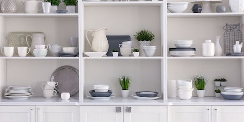 You can find vintage pieces like plates, cups, and glasses at garage sales or thrift stores for next to nothing and use them to decorate your open shelves. Antique books, vases, and jars are also perfect for this purpose. Simply placing these items on your open shelves will give your home the vintage feel you’re looking for.