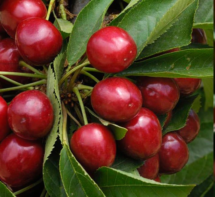 Lapins self-fruitful and do not require a pollinator to set fruit in most regions. (A Lapins tree is the perfect selection as a pollinator for other cherry tree varieties.) The large cherries are one inch across, and the flexible skin resists splitting. The flavor is divine—often referred to a Bing-like—and is both juicy and sweet. The fruits are delicious right off the tree and wonderful for baking, juicing or drying.