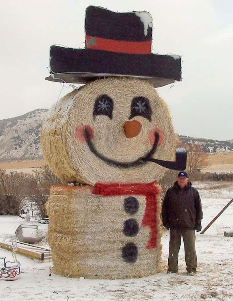 Spray paint hay bales! You could load them up in a pyramid shape to make it look like a Christmas tree, stack on top of each other to spray in white “snowmen” or get more ideas through apps like Pinterest.