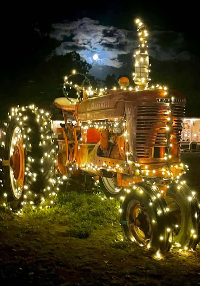 Hang Christmas lights around grain bins, tractors, combines and more. Anymore, you really don’t need to plug Christmas lights in. They make battery or solar powered lights which for decorating farm equipment. Whether putting it on display in your yard, from parades to tractor shows and more, nothing is quite as festive as rural life on display through new or vintage farm equipment.