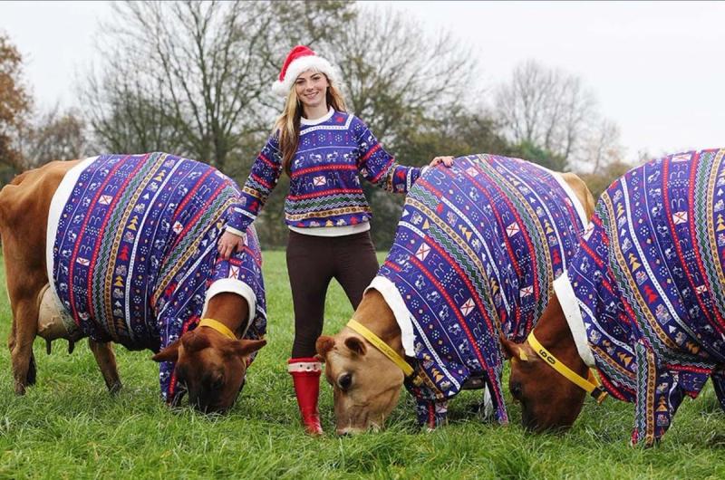 Involve the animals. Whether it’s the family portrait which includes the farm dog or livestock, farm animals and Christmas always tend to go viral. Perhaps you’ll want to hang wreaths around the neck of your goats or even horses! One farmer from visitjersey.com even made a video about making Christmas sweaters for her cows.