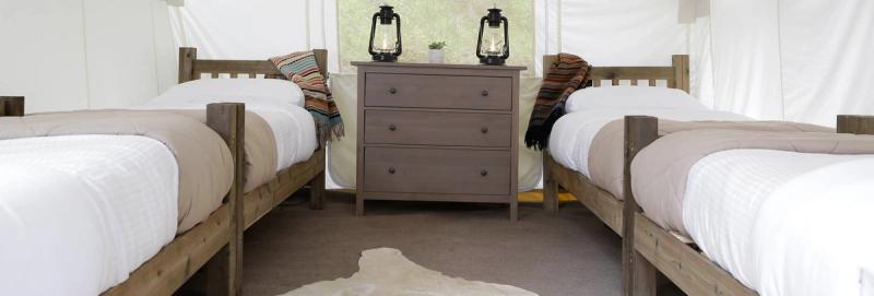 Because glamping is all about the experience, facilities typically try to offer something other than a dodgy RV or sterile motel room for you to rest your head. Sleeping under the stars takes on new meaning when your bed is in a Conestoga wagon, an upcycled shipping container, safari tent, tiny home, or a yurt. Some tents even have clear “skylight” panels for you to view the stars as you drift off.