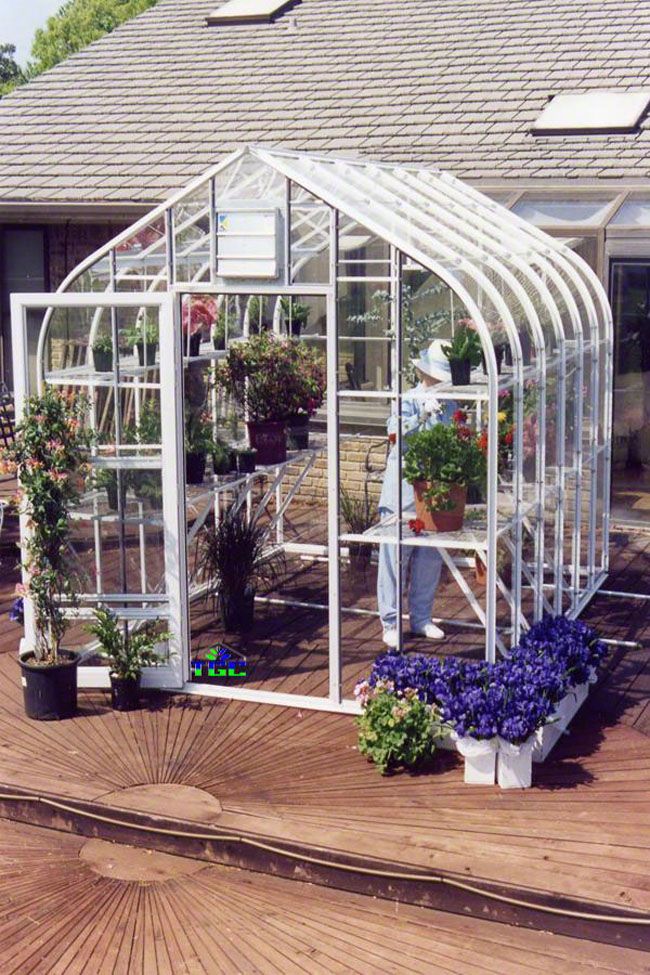The greenhouse can be installed directly on the ground, or placed on a foundation. A variety of sizes are available, with 12-by-12 feet the most popular.
