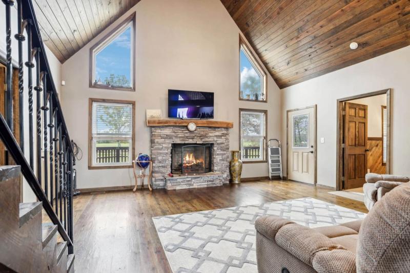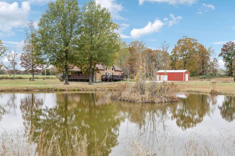 Nine acres of scenic land offer endless opportunities for relaxation and recreation. A stocked pond sits just across the driveway from the residence, so you can fish at your own leisure. Store vehicles and equipment in the large detached garage and even larger shop with a 16-foot lean-to.