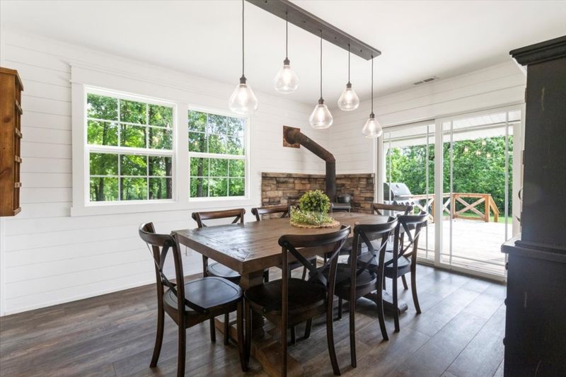 Outside, the 32-by-20-foot partially covered deck invites early morning coffee, afternoon barbecues or stargazing. A well-equipped barn, workshop and chicken coop support a hands-on lifestyle, while the large stocked pond and fenced pastures accommodate livestock, recreation and income production.