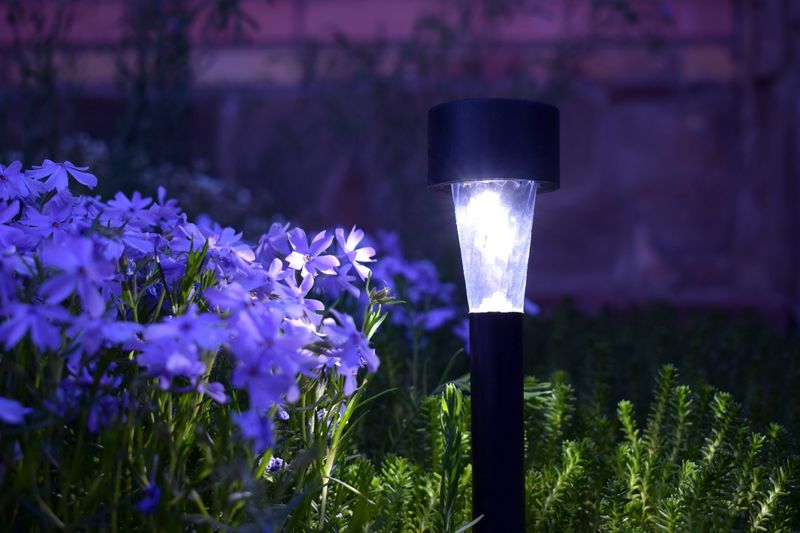 Solar spotlights allow you to show off your beautiful trees and shrubs, even at nighttime. Place them at the base of your trees, making sure the solar panel is positioned to capture enough sunlight to charge.