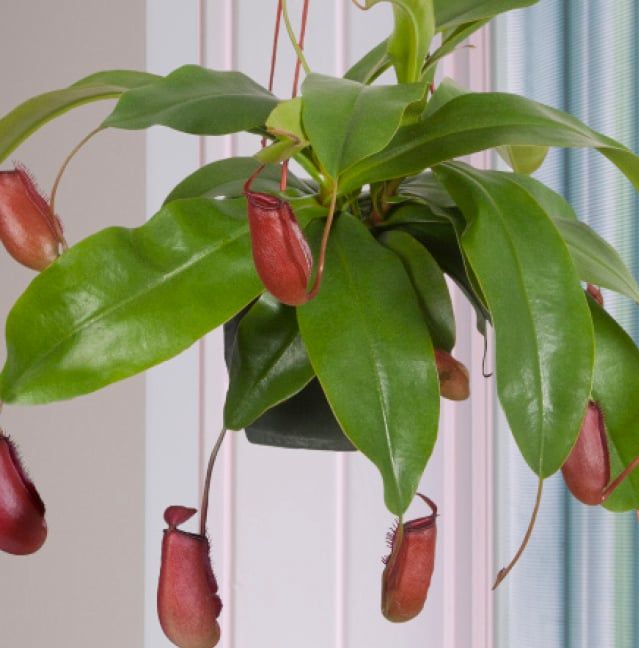 ‘Lady Luck’ is a Tropical Pitcher Plant that has been bred for its abundance of bright red pitchers. A cross between Nepenthes ventricosa and Nepenthes ampullaria, ‘Lady Luck’ has rich burgundy-red pitchers that hang from the plant. Grow ‘Lady Luck’ in a hanging basket in a sunroom or on a sunny windowsill.