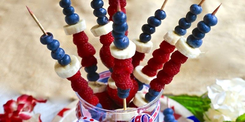 It’s easy and enjoyable to commemorate national holidays and other observances with food—just pick out some key colors and have fun. So it should be no surprise that your family and any July 4th guests will go oooh and aaaah with these colorful kabobs.