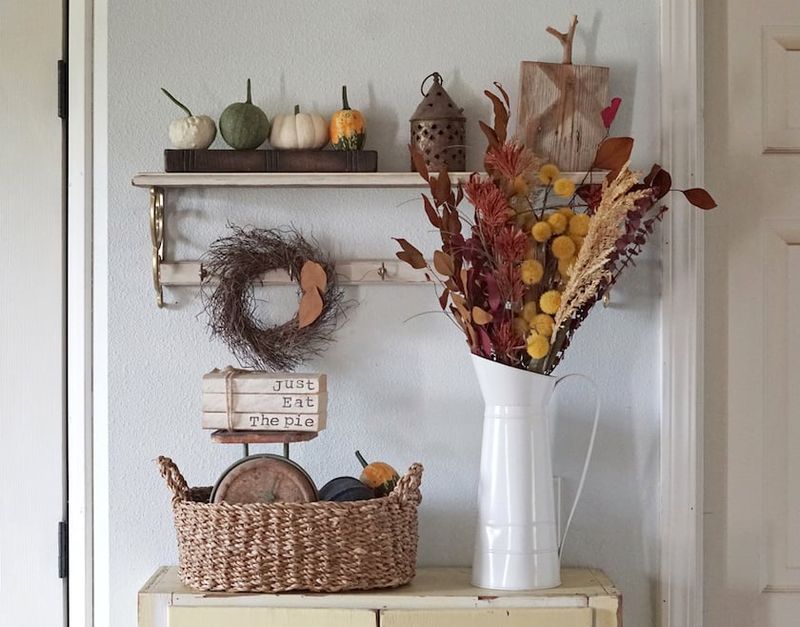 In past years, fabric pumpkins, canisters, and amber glass made their debut and won’t be on their way out this year, but will be complemented with wood pieces. “Wood bowls have been big this year. I will be integrating more wood bowls, vases, and vessels into my fall accents this year,” says Tracey from The Fake Farm Girl.
