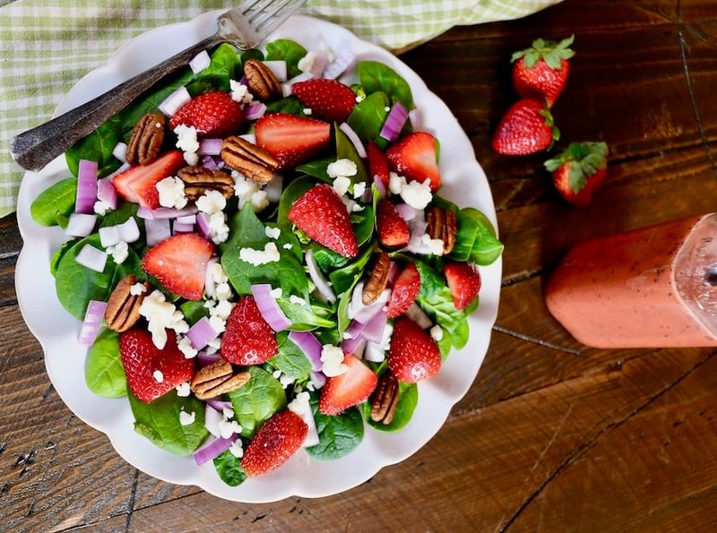 Whether from your own garden or from your local farmers' market, strawberries are always a fresh choice. So during this upcoming season of strawberry abundance, it's the perfect time to include them in your recipes. I just had to start off with this amazing Strawberry Spinach Salad with Strawberry Balsamic Vinaigrette.